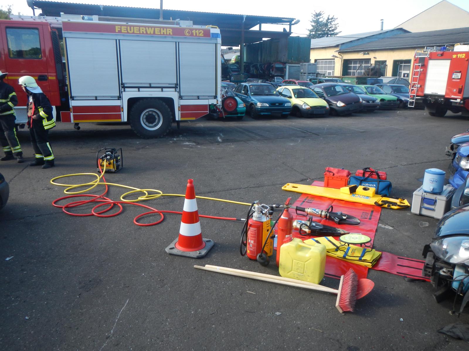 Am 26.09.2015 fand bei der Feuerwehr Eggersdorf die jährliche Ganztagsausbildung statt. Als erstes fand eine Einsatzübung im Beheindertemheim Eggersdorf statt. Danach konnten die Kameraden mit unserem Hydraulischen Rettungsgerät üben, dazu wurden von der Firma Pries&Friese mehrere Auto zur Verfügung gestellt. Wir konnten unteranderem neue Rettungstechniken ausprobieren. Als nächstes fand eine Einsatzsatz Übung im Seniorenheim Eggersdorf statt. Die letzte Station war der Bötzsee, dort wurde eine Personenrettung aus dem Wasser, mit unserem Schlauchboot, geübt. |